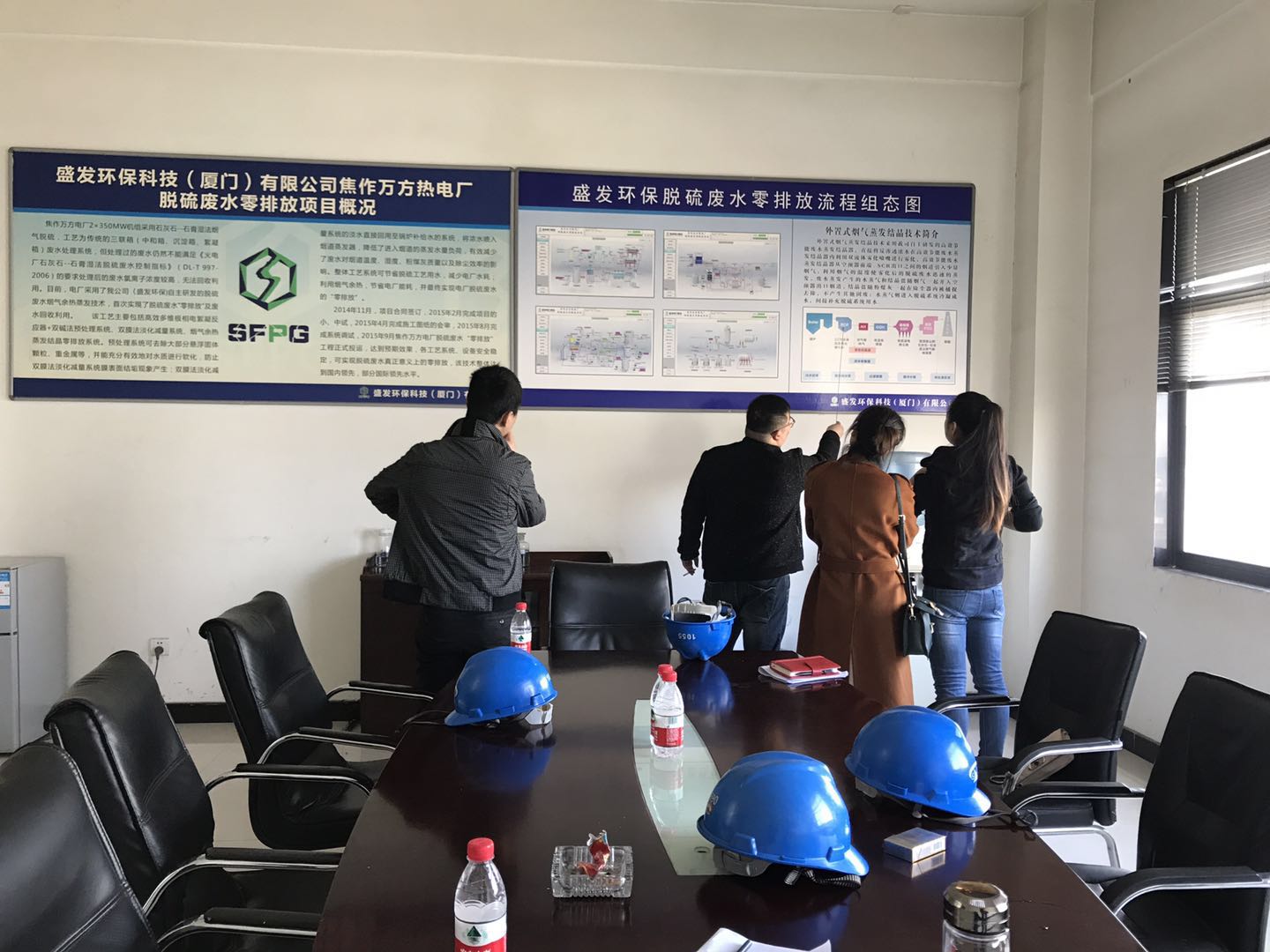 2018年3月16日,陜西環(huán)保產(chǎn)業(yè) 陜西秦邦環(huán)??萍脊煞萦邢薰纠罱?jīng)理一行到焦作項目部考察參觀(guān),對脫硫廢水著(zhù)重了解,市場(chǎng)總監戚威與其進(jìn)行交流。
