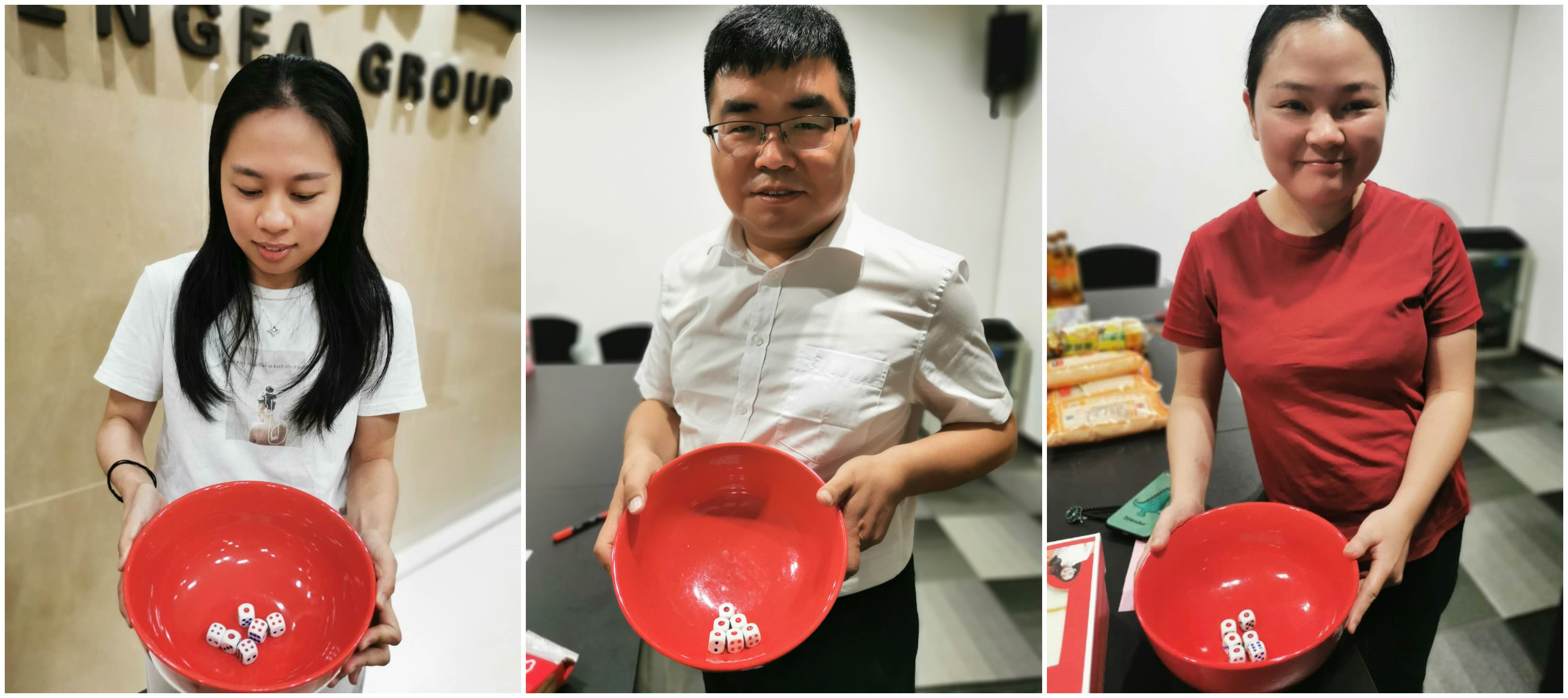 今年延續了去年的習俗,自9月10日-9月30日,每人每天兩把。在此期間內博到狀元的同事進(jìn)行比大小,博餅結束后最大者勝出。今年狀元為林麗惠,博出最大的狀元為狀元插金花!